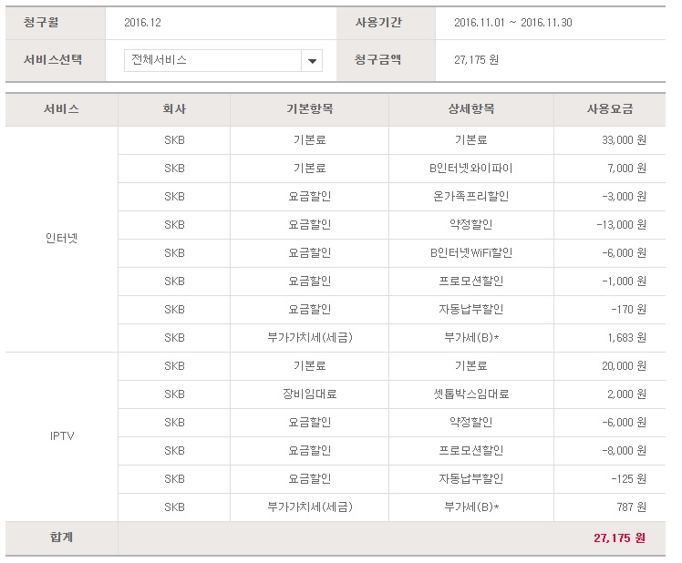 남편이 sk휴대폰 장기가입자이기 때문에 혹시 skb에서 기존에 할인해줬던 부분이 있는지는 모르겠습니다.