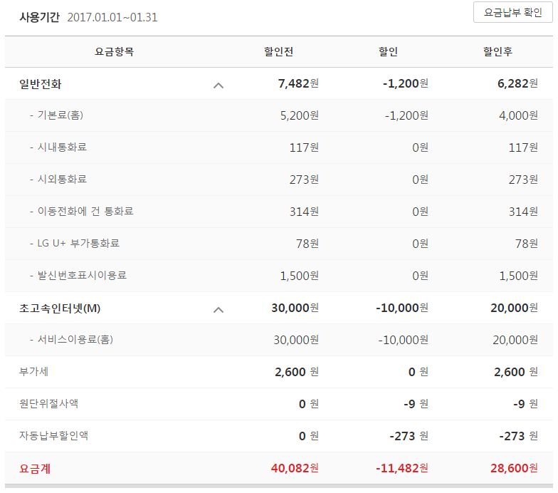 오! 일단 요금을 살펴보자면, 딱 기본적인 요금을 납부하고 계시네요~!