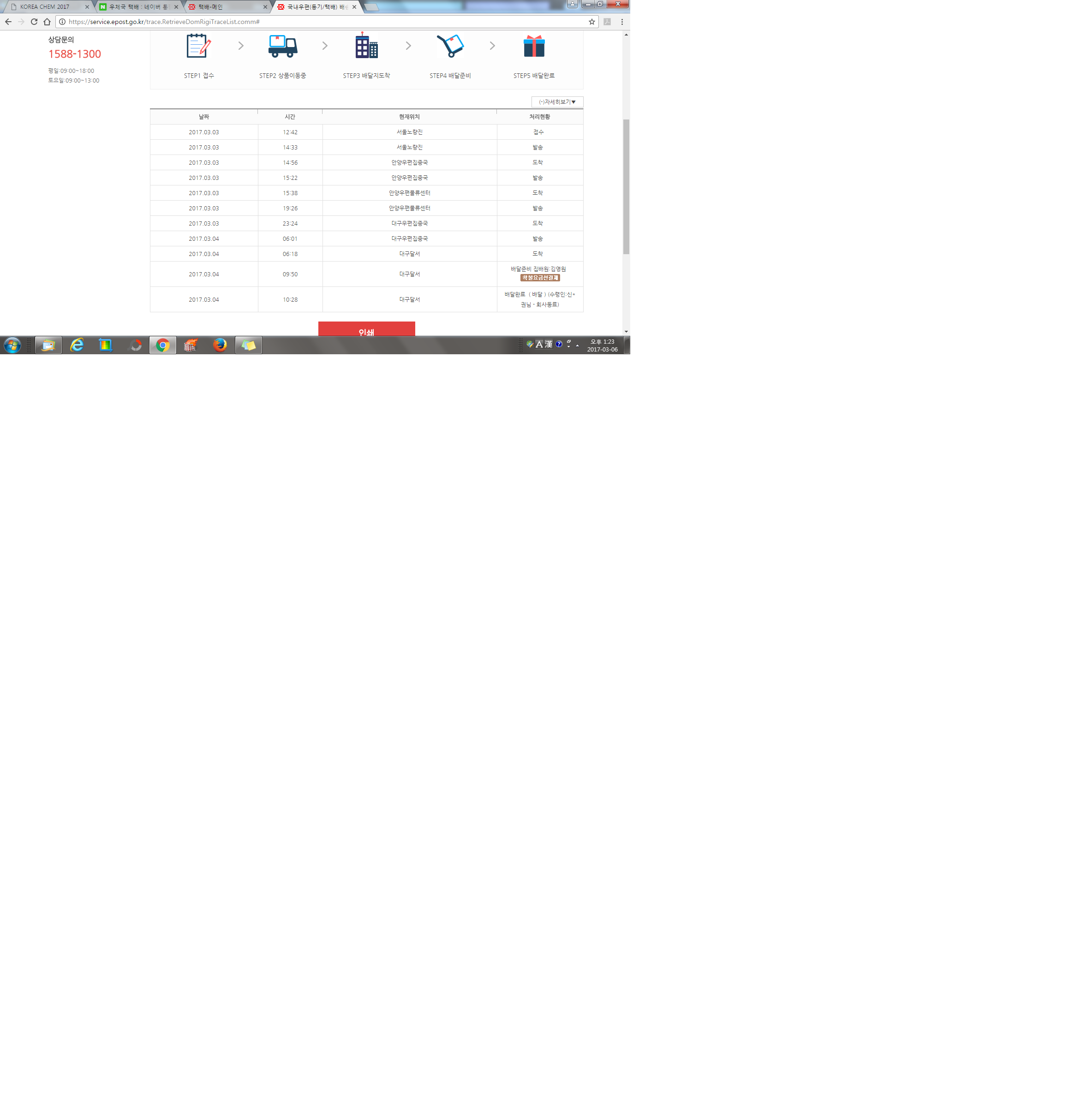 지난주 3월 4일 토요일에 대구 사무실에 도착한 것으로 확인되었구요~