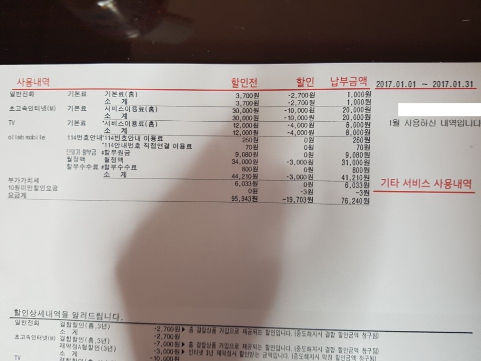 한달에 인터넷+티비+집전화 = 28000원에 이용중입니다