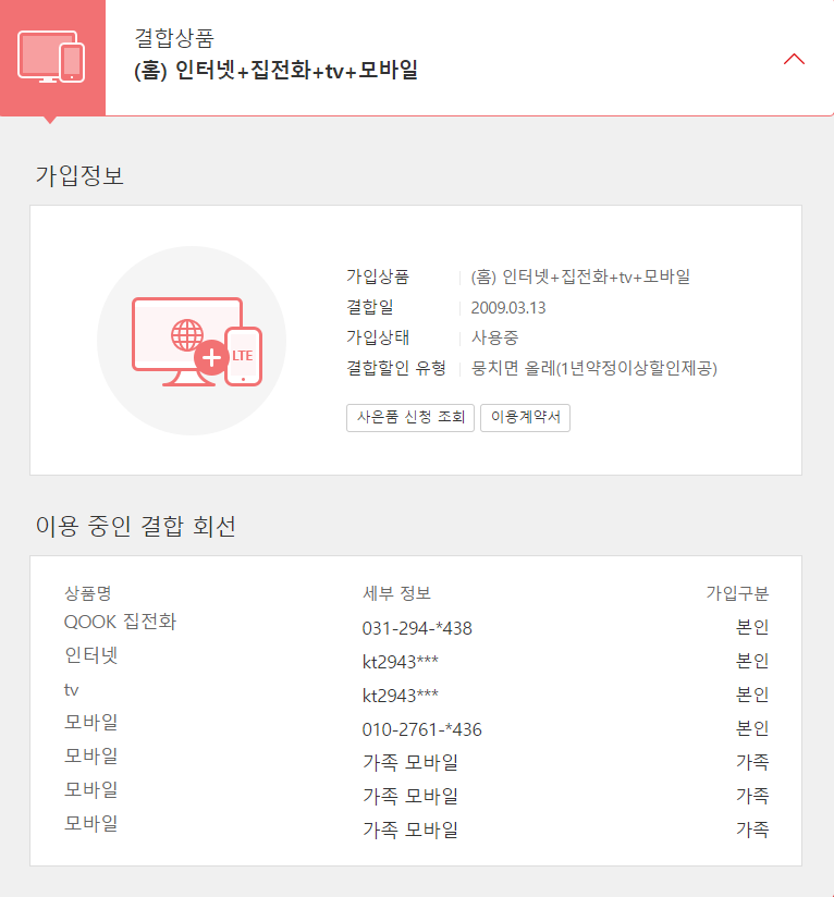 1) 말씀하신대로, 가족분들 휴대폰 결합으로 할인을 적용받고 계신 상황이라면~?