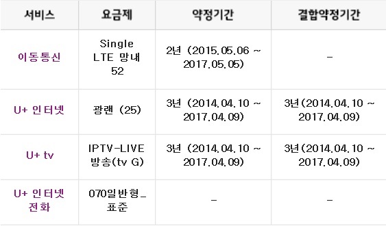 1) 4월 LG의 인터넷+TV 약정기간이 만료되면
