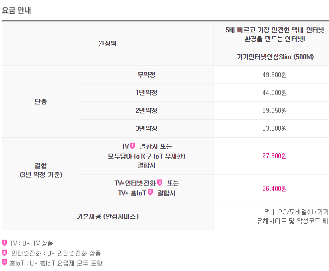 500메가 인터넷을 "26,400원"에 이용할 수 있는