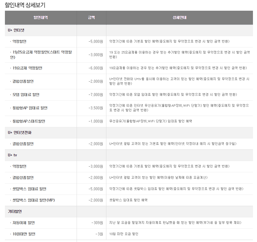 인터넷과 인터넷전화, U+tv 요금에서 결합상품할인이라는 명목으로 각각 -2,000원씩 할인이 들어가 있는데,