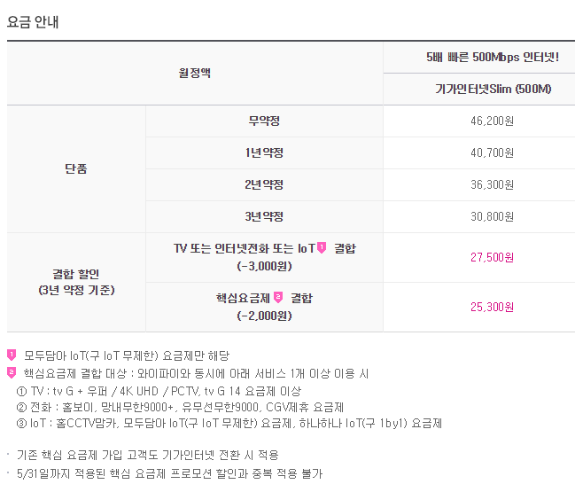 3. 그리고 곧 약정이 만료되는데, 재약정을 하면서 인터넷을 기가slim으로 변경할까 고려중인데,