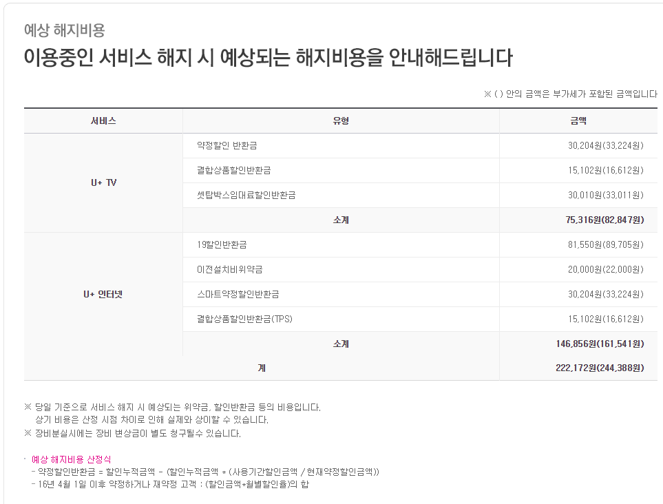 현재 가입중인 LG 홈페이지 들어가 예상해지비용 조회해보니