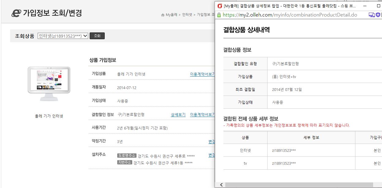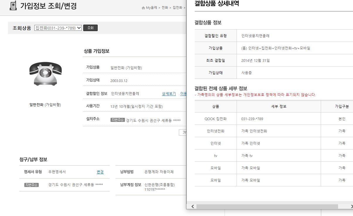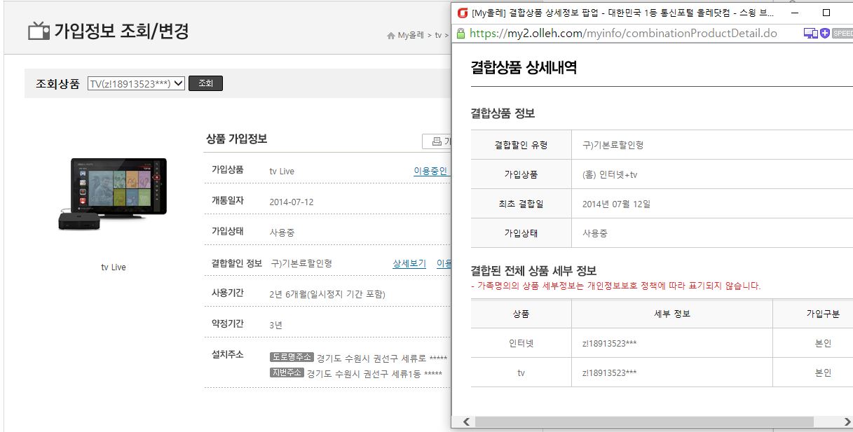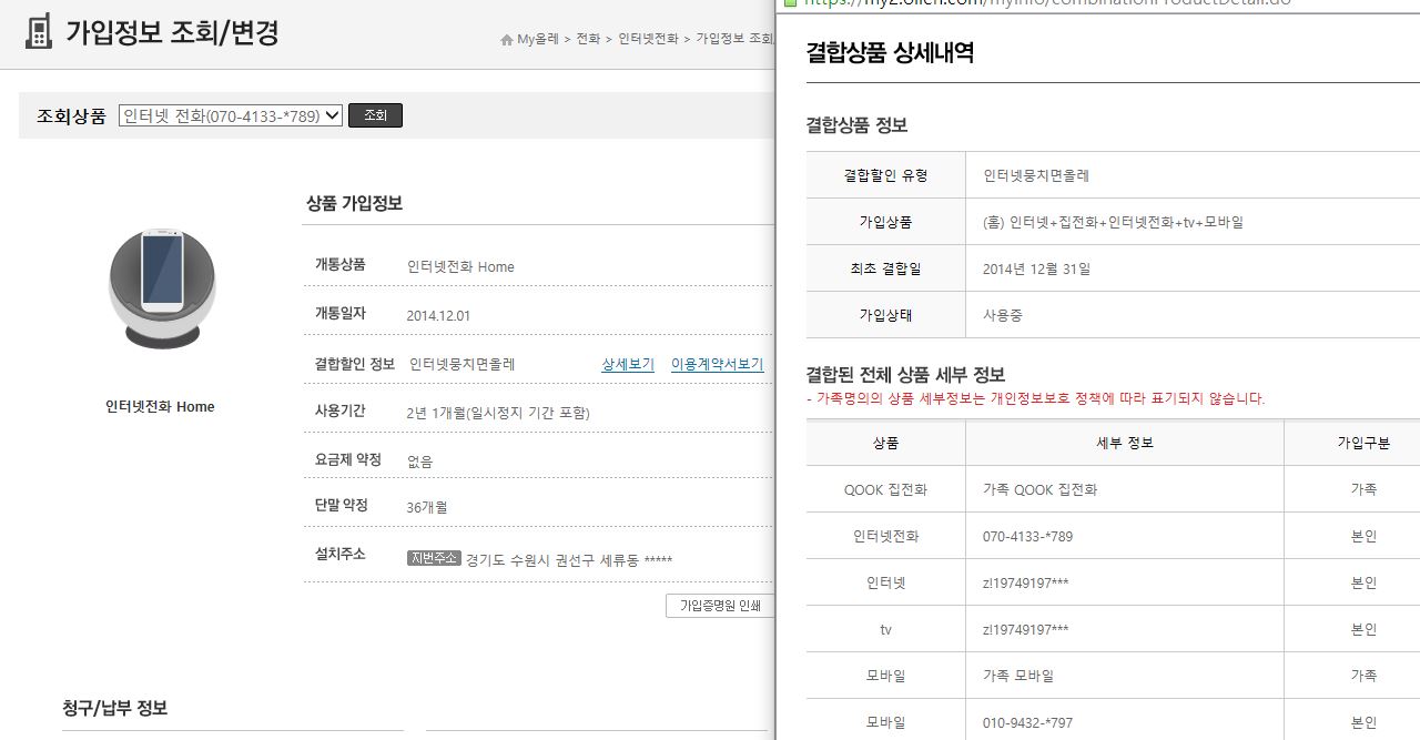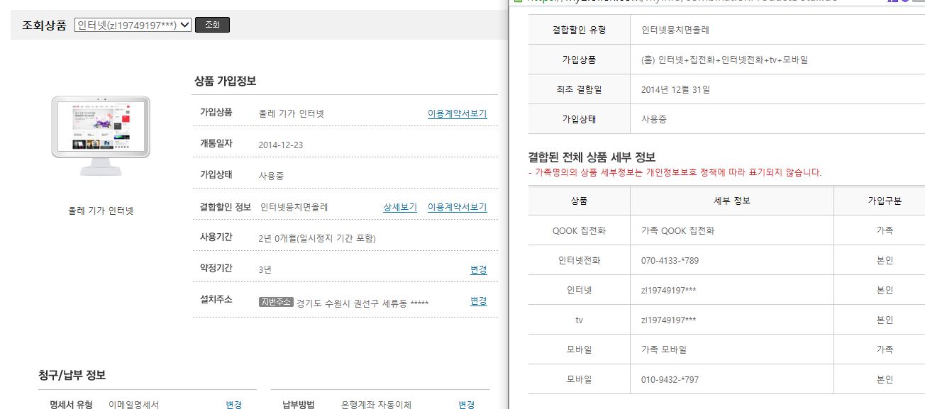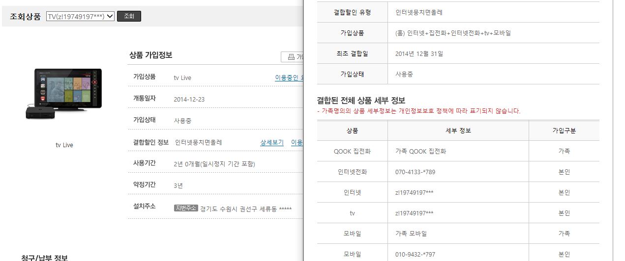 위 3장은 제 명의로 되어있는 KT상품 가입정보입니다.