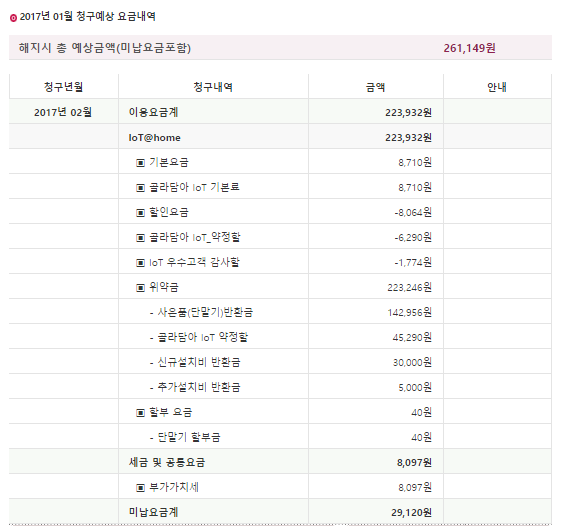 TV+인터넷+IoT 결합으로 3년 약정에 3개월간 썼습니다.