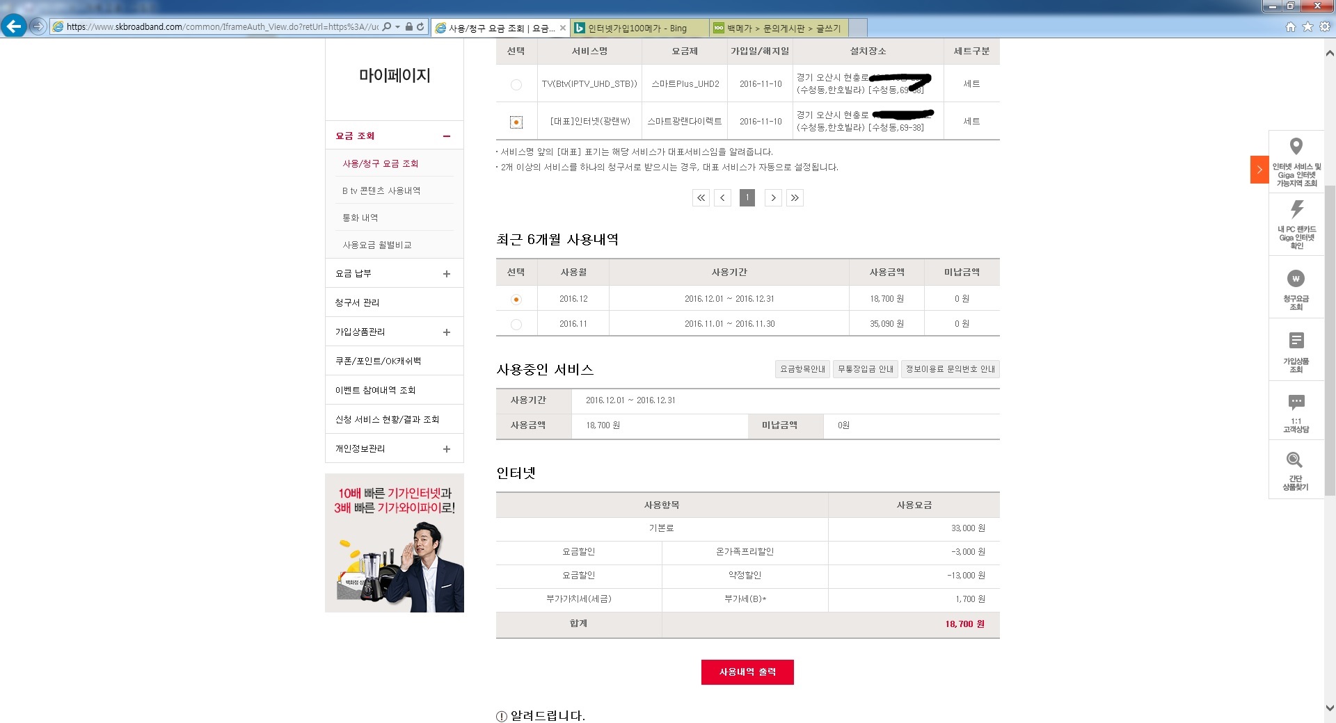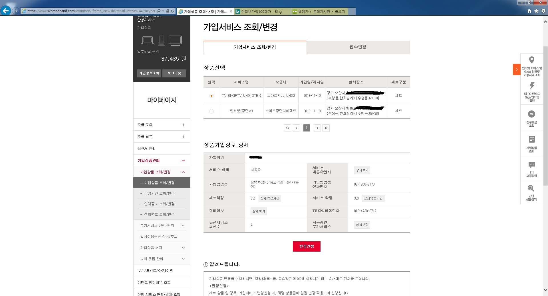 인터넷 개통 후 SK본사 부가서비스 TM부서에서 연락을 받으시고(일명 영업전화죠;;)