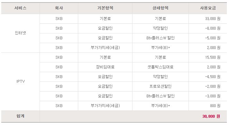 : 인터넷 22,000원 + TV 15,400원 부과