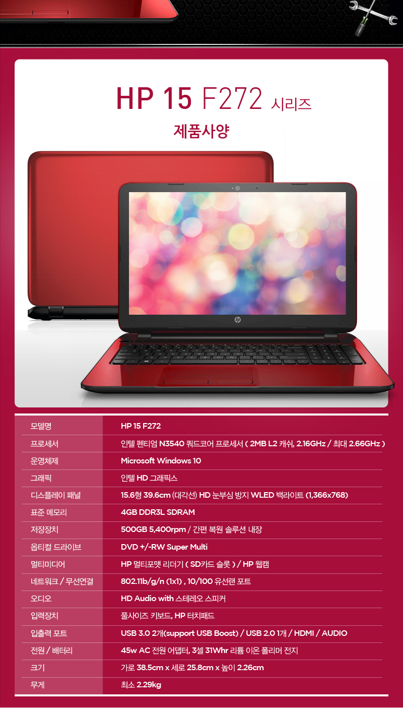 아래 첨부해주신 HP 15-F272의 스펙을 살펴보니...