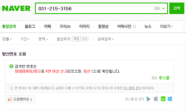 후스콜 통해 이미 텔레마케팅/광고 번호로 4번 이상