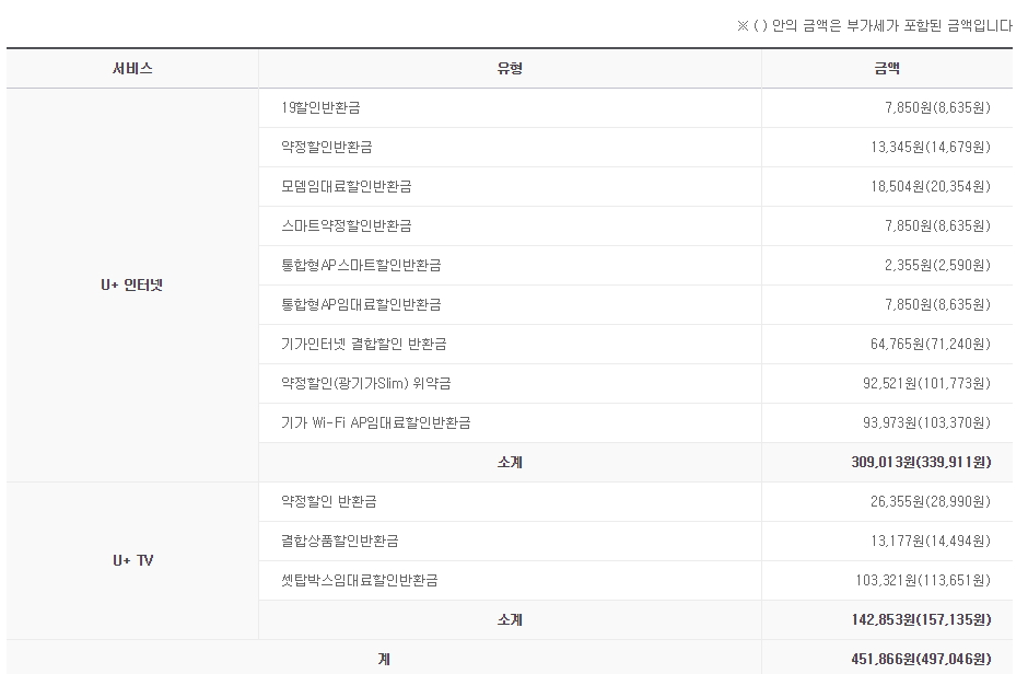 LG상품들을 최소한 약정 만료일까지는 유지하시는 것이 유리합니다~!