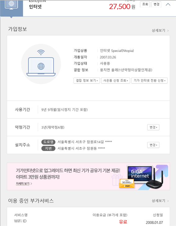 KT인터넷을 10년전에 가입하여 변경없이 쭉~~ 사용하셨나봐요