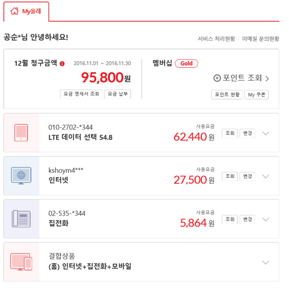 엄청나게 손해를 보고 인터넷과 집전화를 사용중인 것을 알게 되었군요;;;