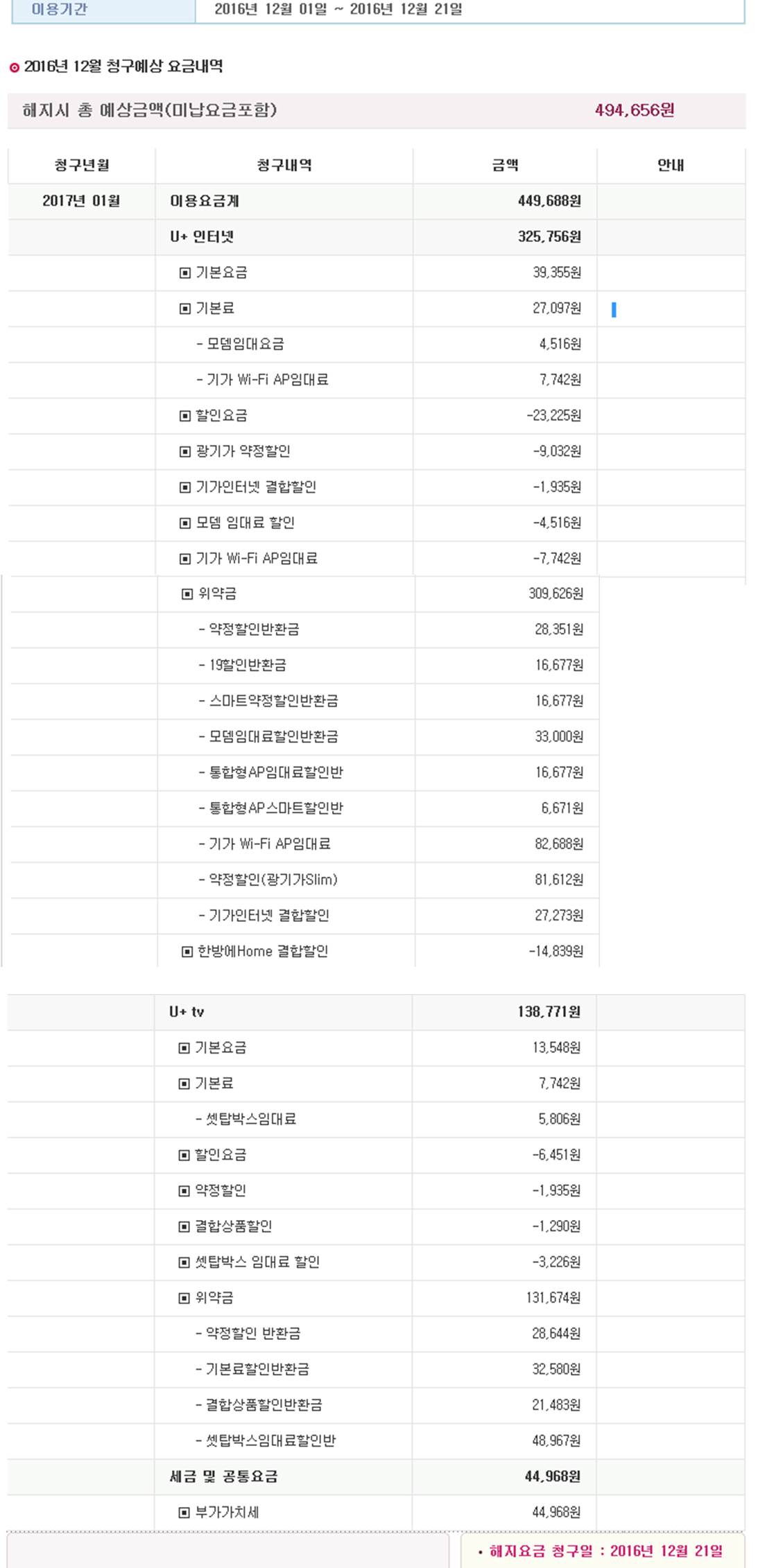해지위약금을 조회해보니 494,656원이 나왔는데 게시글들을 보니 유플러스는 장비임대료같은것까지 포함시켜 실제 위약금은 더 적다는 글을 보았구요.