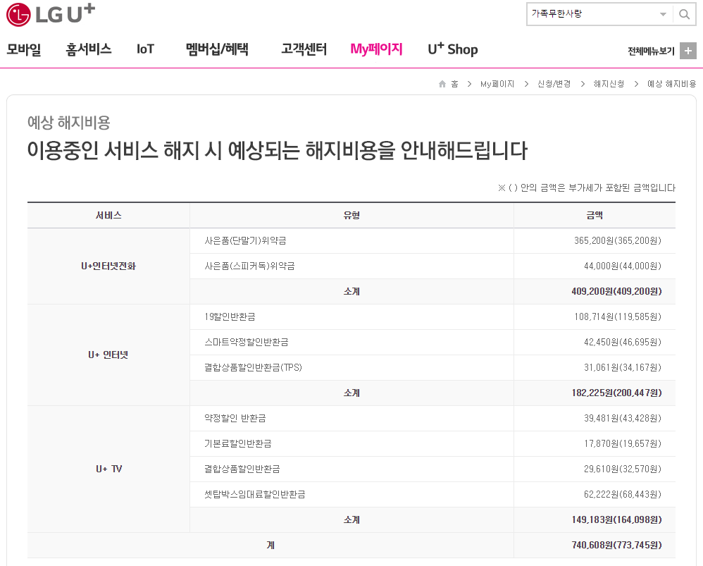 인터넷과 TV 위약금 만이라면 다른 고객분들과 크게 차이가 없는 편이기는 하지만