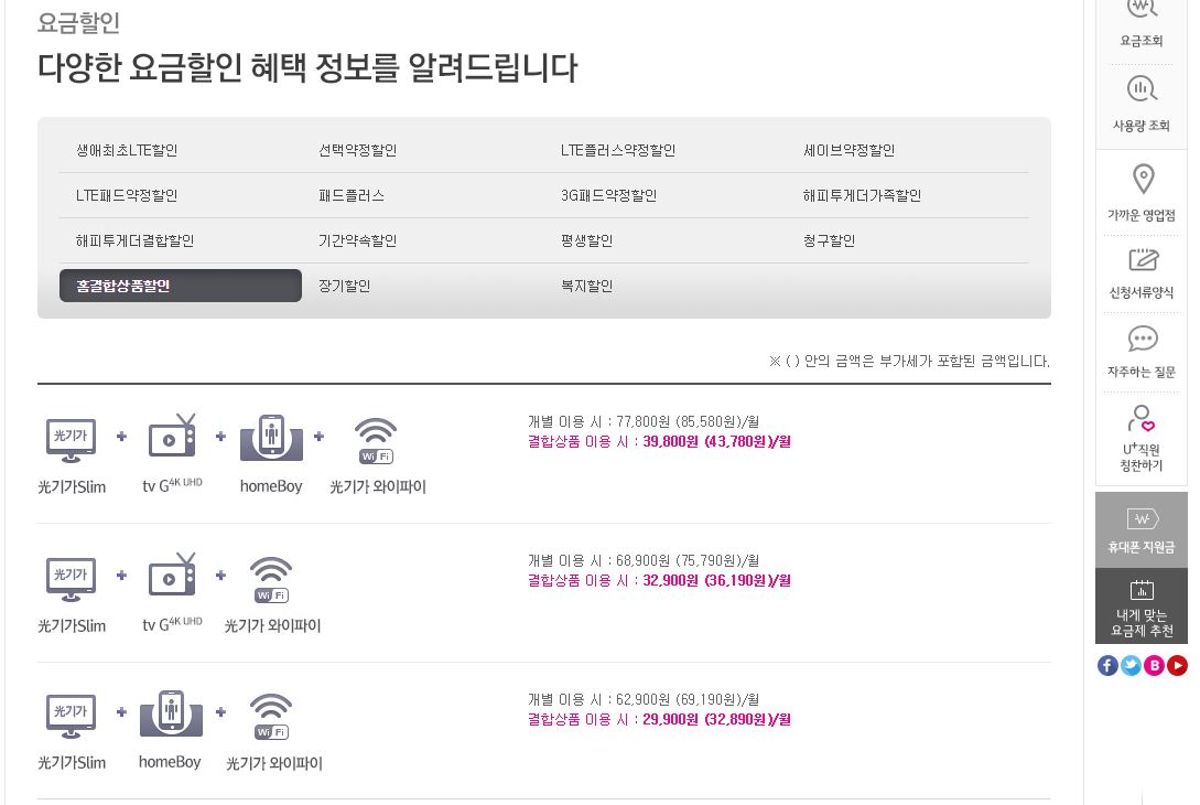 u+ 공식홈페이지에서 조회해보니 아래와 같은 할인 상품이 있네요.