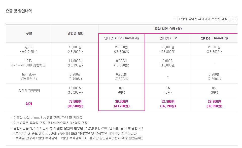 TV가입 시 UHD셋탑박스 임대료(+4,400원)가 있습니다.