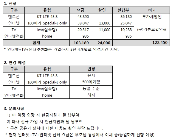 현재 사용 중이신 KT 인터넷과 TV, 인터넷전화 약정이 만료되었군요!