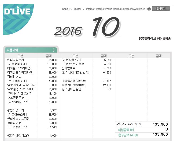 딜라이브 지역케이블 상품 약정이 만료되어,