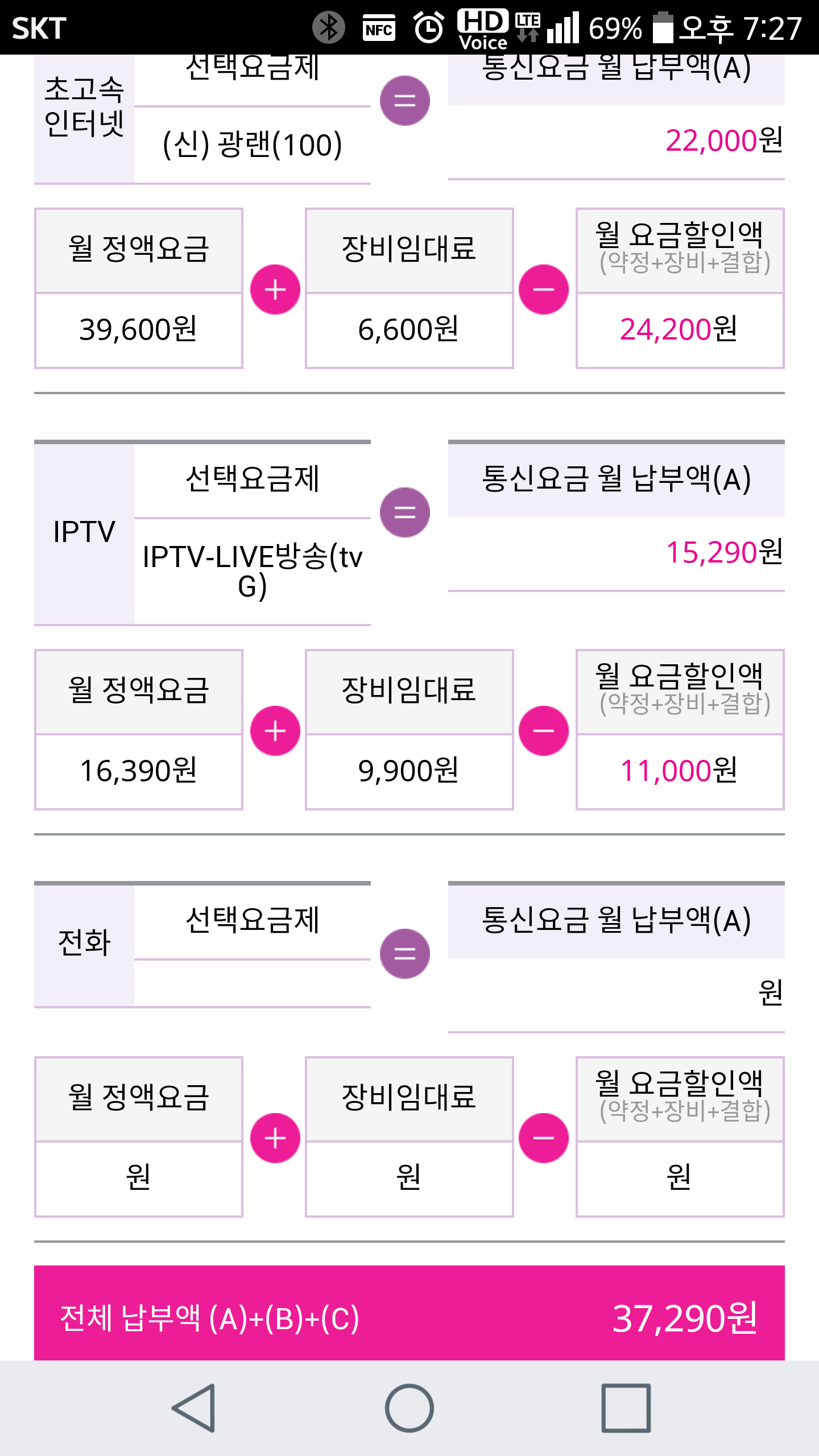 오늘 LG에서 계약 안내서를 받아보니 요금이 37,290원으로 되어 있네요.