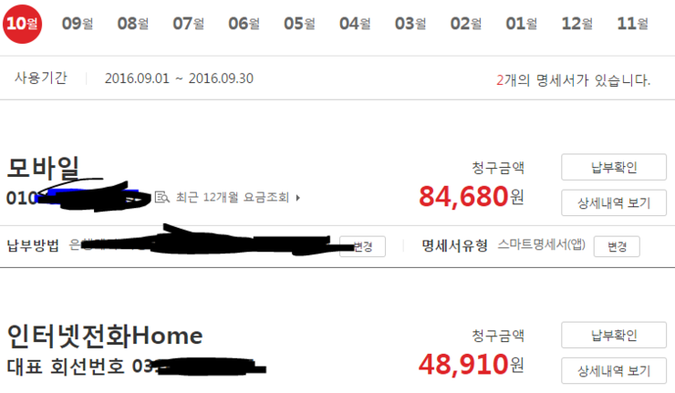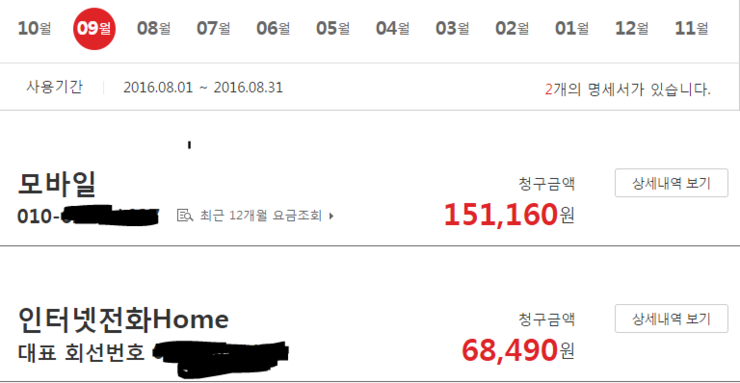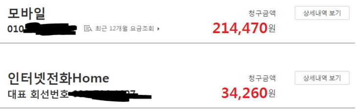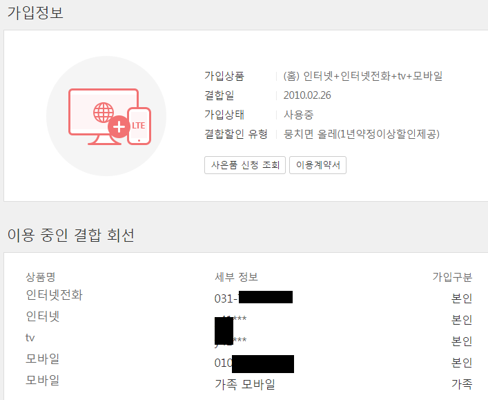 KT 인터넷 + TV + 집전화 / 그리고 휴대폰 2회선 을 사용 중이시고,