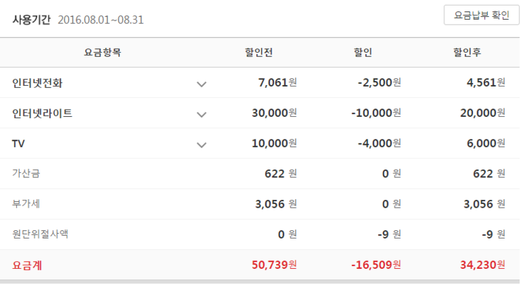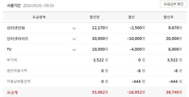 같은 통신사 인터넷 + 휴대폰 결합으로 요금할인이 가능하거든용 ^^*
