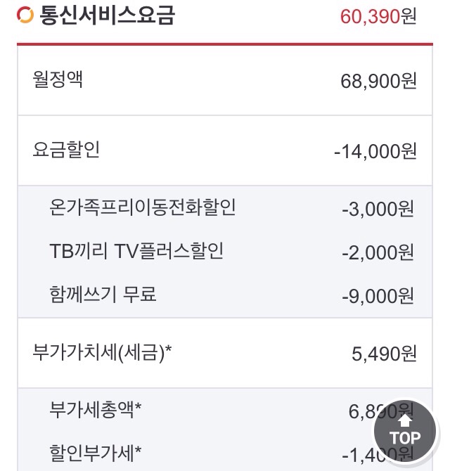 SK로 매월 납부하시는 총 요금은 얼마인가요??