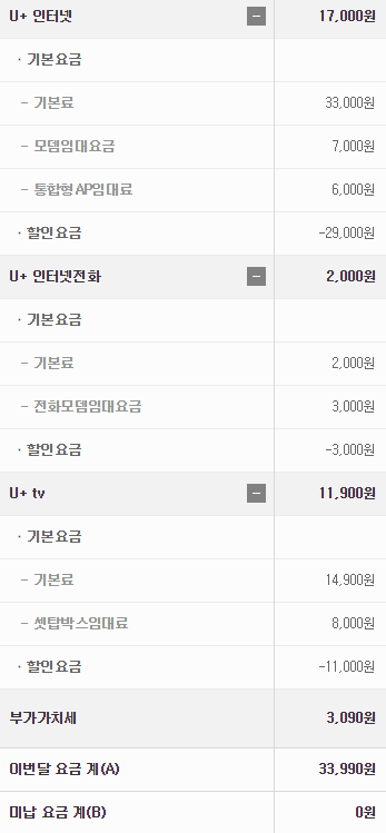 대략적으로 인터넷 + TV + 전화까지 이용중이기에