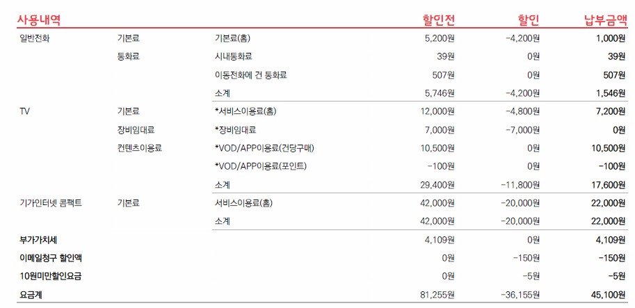 - 이 요금이면 기가콤팩트와, IPTV요금 모두 아주 많이 할인받으신 상태랍니다~*