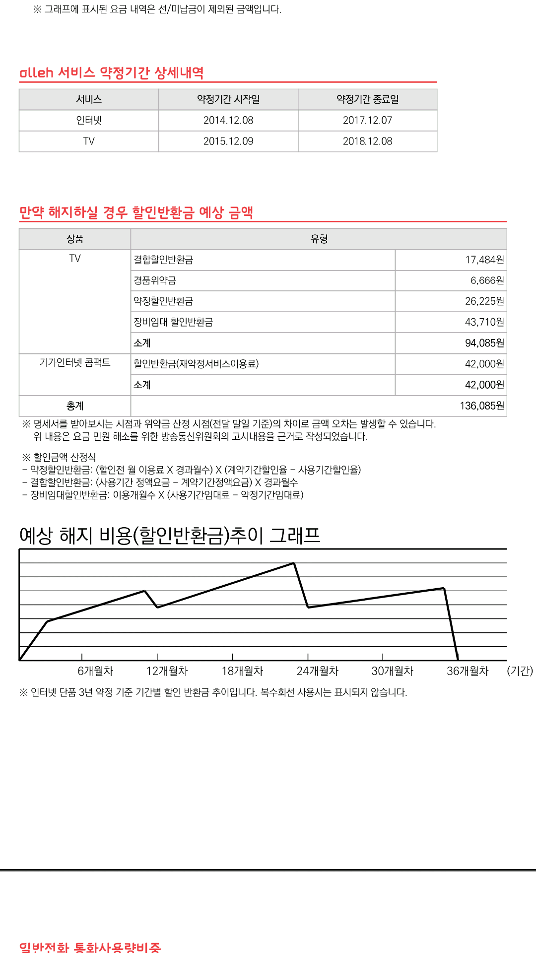 1) KT상품 해지 시의 위약금이 얼마인가요~?