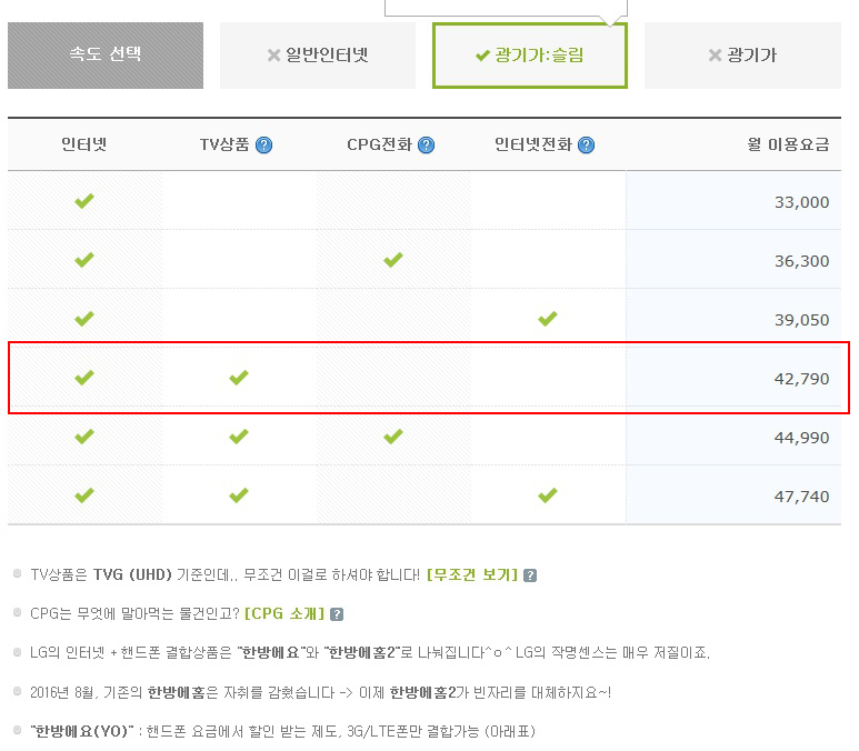 * 월요금 : 광기가 슬림 27,500원 + TVG (UHD) 15,290원 = 총 42,790원