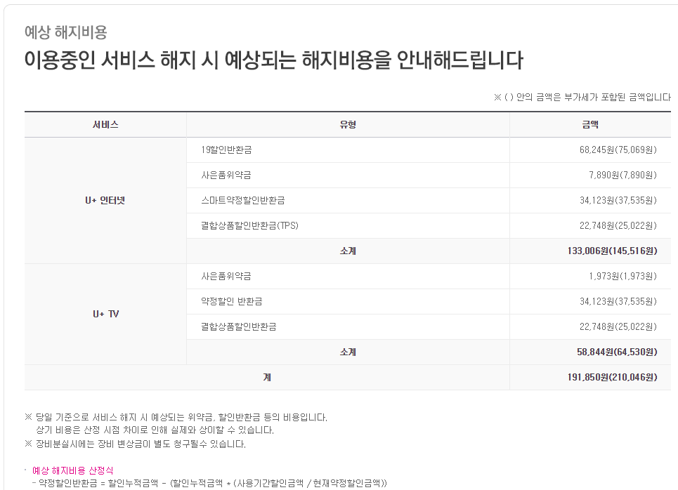 LG본사에 전화하여 위약금 품목 상세 내역에 대해 설명을 받으시는 것이 좋을 것입니다