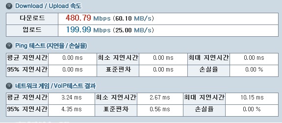 예전 사용하던 SK 인터넷에 비하면 용과 지렁이의 차이네요.