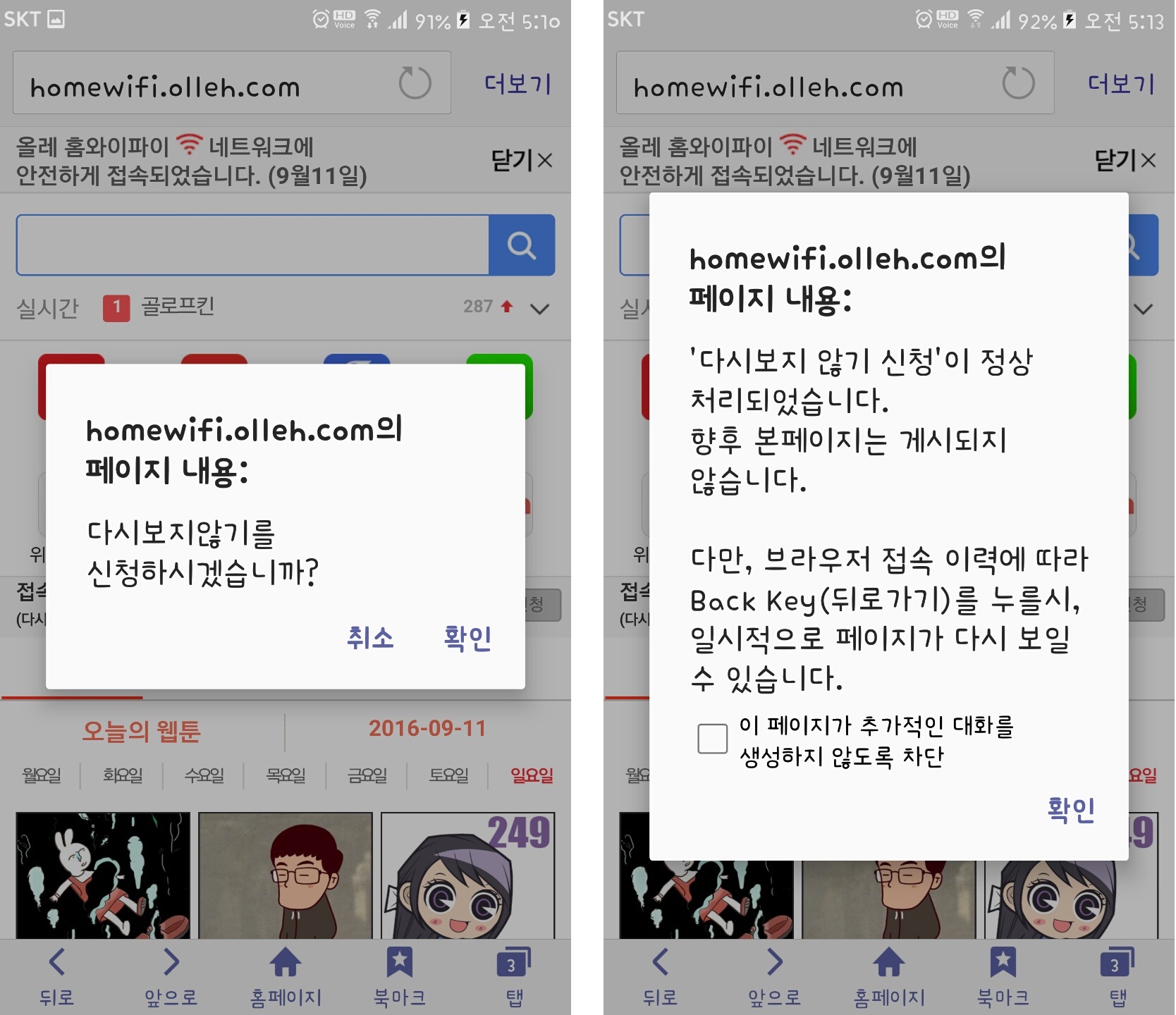 "홈 와이파이 페이지 다시 보지 않기 (비슷한 문구로 나올겁니다! ^^) "