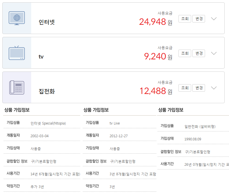 오! KT의 인터넷과 IPTV, 집전화를 오랜기간 사용해오고 계시군요~!