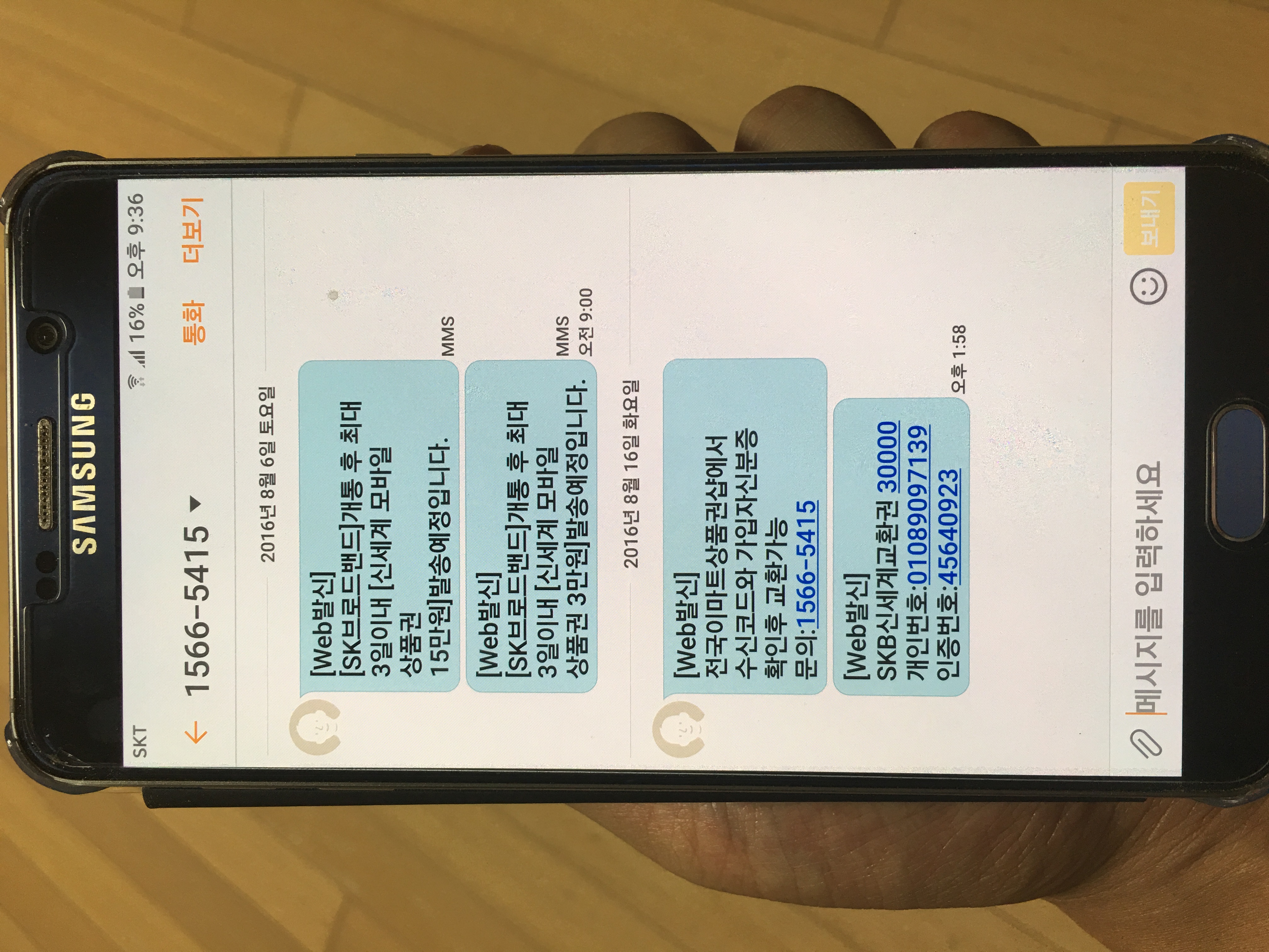 16일에 온 문자에는 3만원권 하나만 온걸로 확인되었네요.