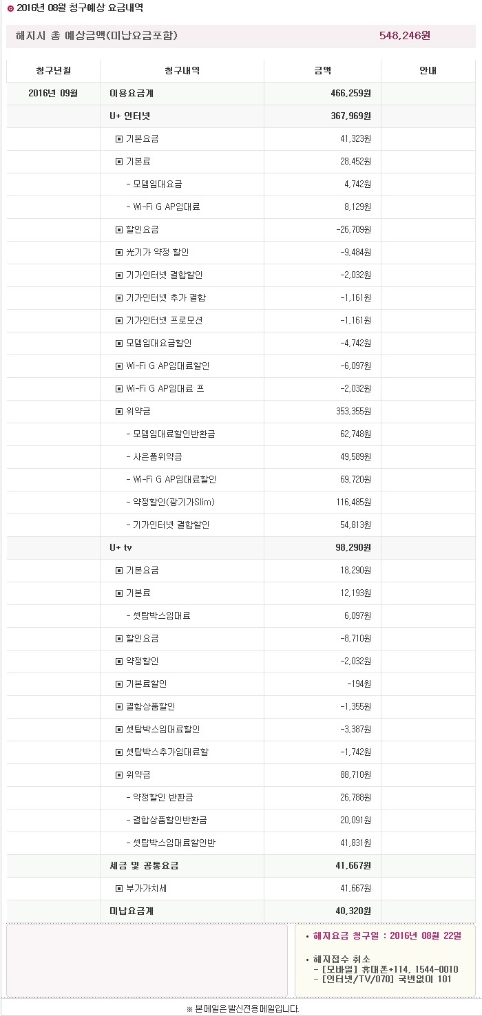 다른 위약금은 고지서 상으로는 문제가 없어 보이는데요..
