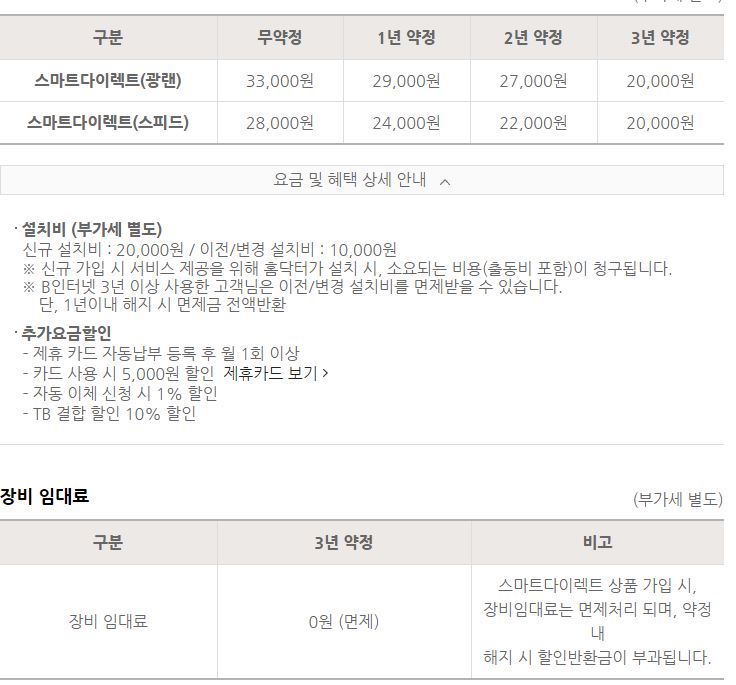 [장비 임대료 :    무약정7,000원    1년약정5,000원    2년약정3,000원    3년약정면제]