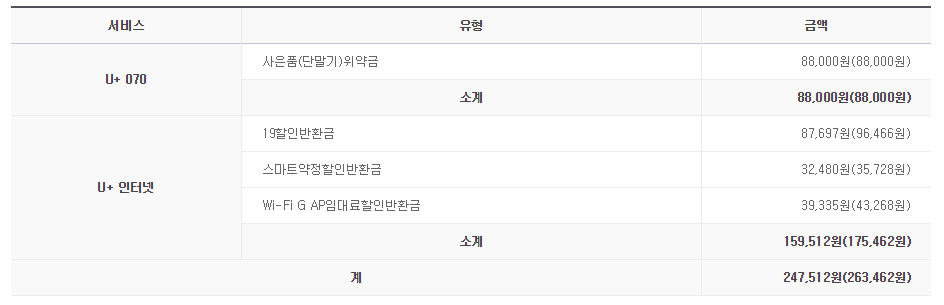 1. 약정 만료기간은 올해 11월입니다. 엘지 홈페이지에서 조회하면 아래와 같이 위약금이 조회되는데.. 제가 정말로 납부할 금액은 얼마일까요?