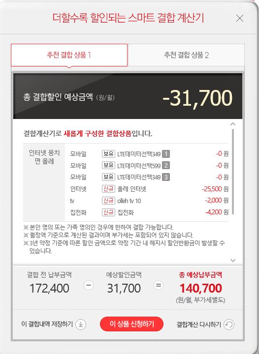 3가지 상품을 가입해서 14만원이 나올 수가 없거든요;