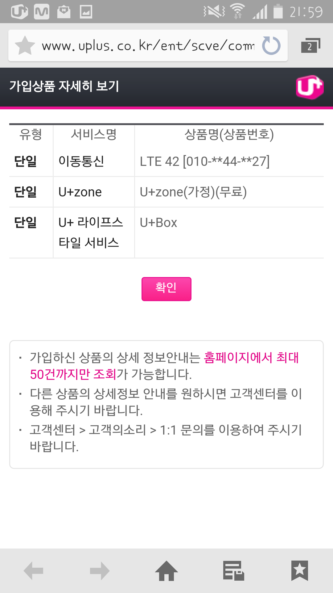 휴대폰 2회선 결합으로 인터넷 무료 혜택을 받으시는 것이 맞으시네요!