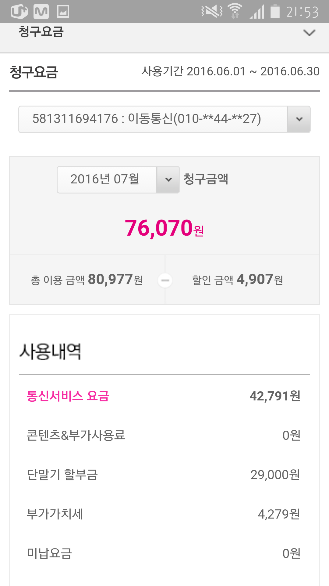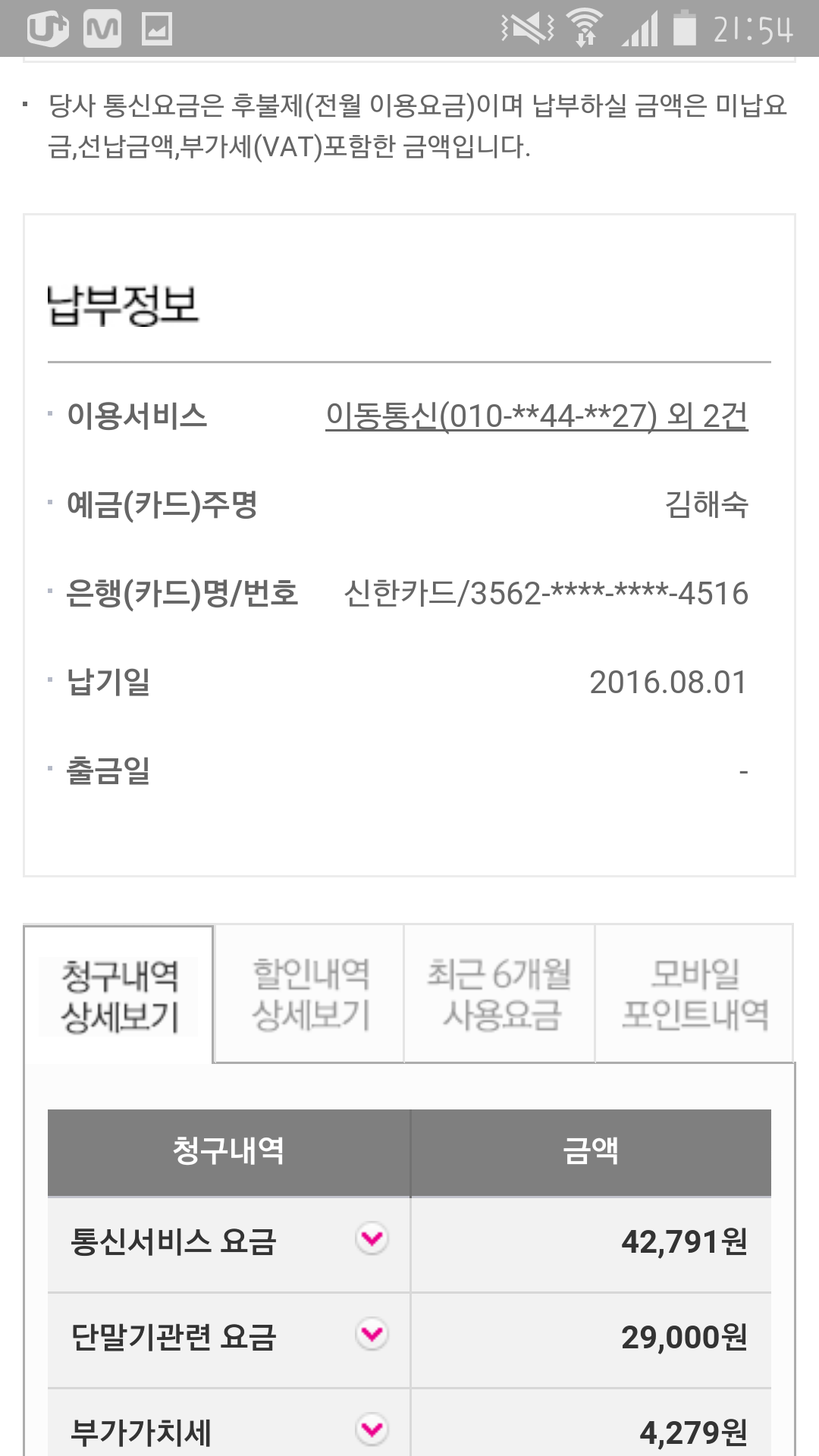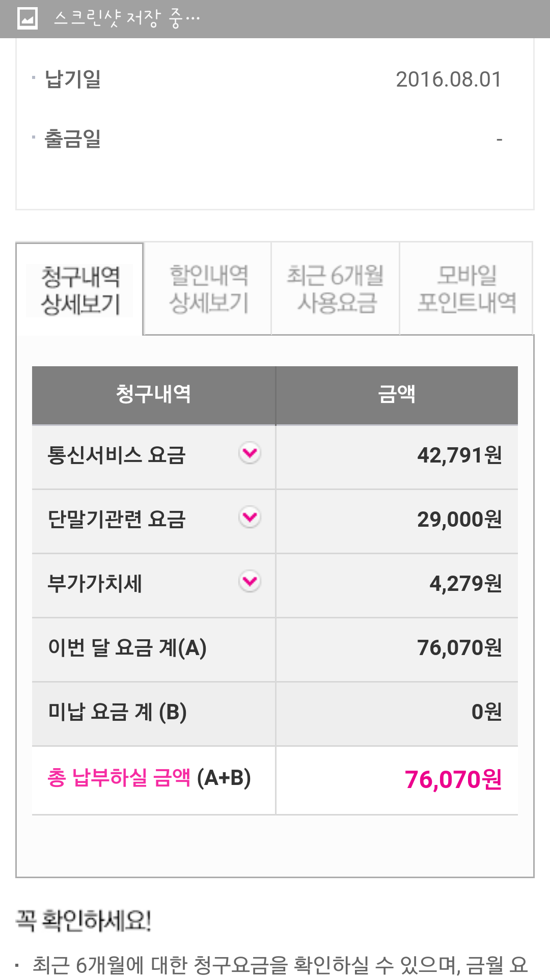 청구내역도 핸드폰비용관련된 것만 뜨네요ㅠㅠ