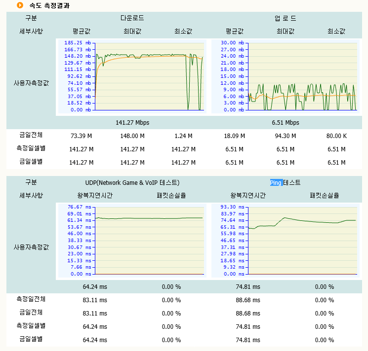남겨주신 속도는 지역케이블, 아니 비대칭망 인터넷의 한계라고 볼 수 있습니다^^;