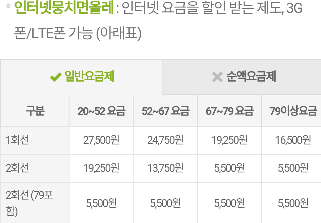 핸드폰 2회선 + 일반인터넷(100메가) 결합시!