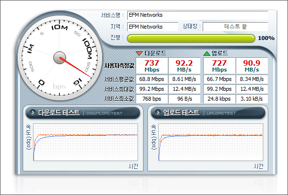 해서, 인터넷 속도측정 결과를 알려주십시오!