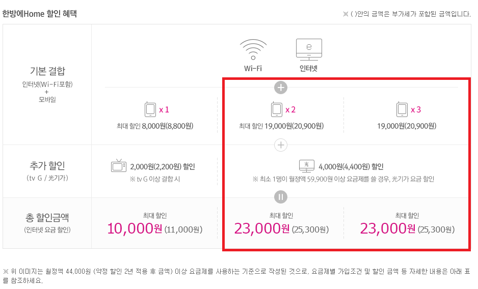 "59.9 요금제를 포함"한 "2회선 결합"일 시에,