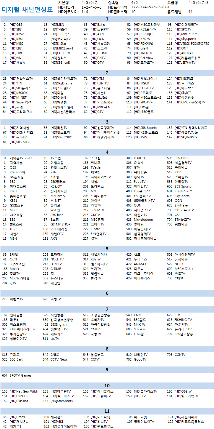 채널 편성표는 아예 제가 이미지(그림)으로 첨부하였으니,