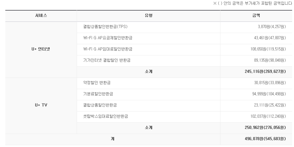 오늘 유플러스 홈페이지에서 위약금 조회를 해봤더니 이렇게 나오네요